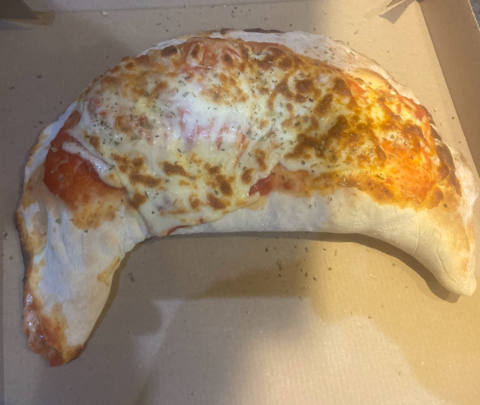 Tomate, mozzarella, thon en morceaux, olives, origan, ciboulette.
